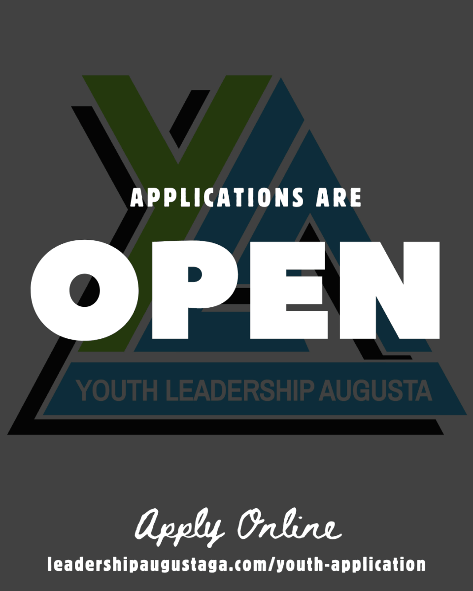 Youth Leadership Augusta Class of 2026/2027 applications are now open. You can view the application at https://www.leadershipaugustaga.com/youth-application. Questions about the class or application can be directed to the Leadership Augusta Coordinator at Miranda.Ewing@AugustaMetroChamber.com.